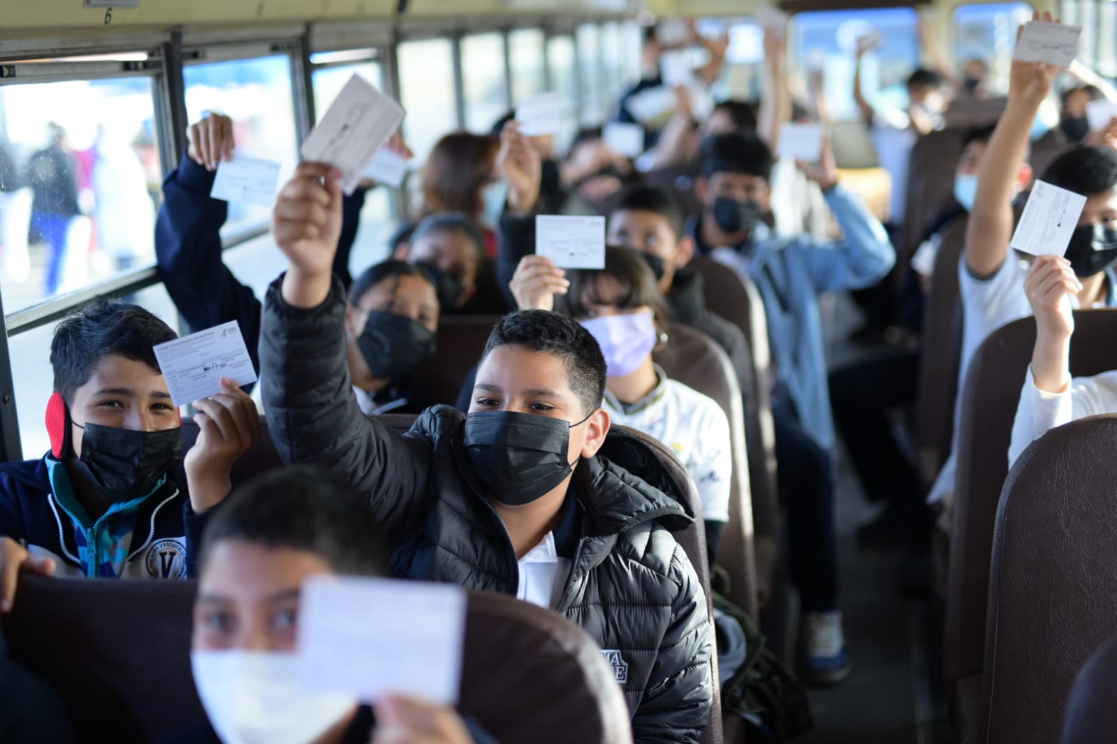Personal de 4 empresas transportistas, del DIF, Transporte, Salud y Secretaría Técnica, directivos de los Servicios Educativos y corporaciones policíacas se sumaron a la logística de esta gran cruzada de vacunación transfronteriza.
