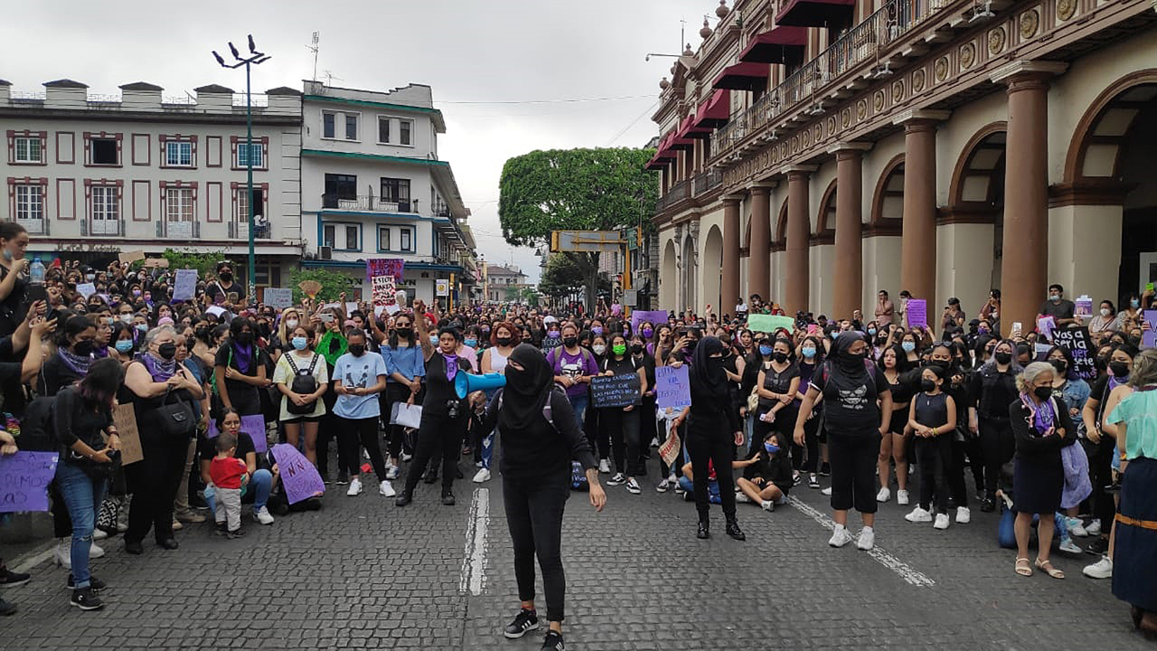 Frente al emblemático y conocido Monumento a La Madre, el contingente de mujeres guardó un minuto de silencio por ella y por todas las hijas que mujers han perdido por la violencia feminicida en Veracruz.