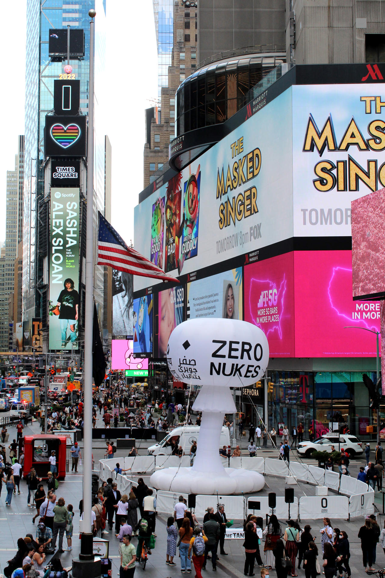 Nueva York, 17 may (EFE).- Un hongo atómico hinchable se levantó este martes en la icónica plaza neoyorquina de Times Square para despertar las conciencias de los viandantes contra el armamento nuclear, porque «como civilización, tenemos que elegir entre prohibir las armas atómicas o dejar de existir», advierte a los pies de la columna blanca su creador, el artista mexicano Pedro Reyes.