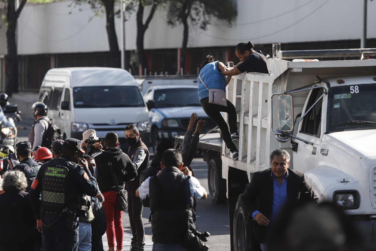 Después de varias horas manteniendo los bloqueos, los manifestantes marcharon desde los distintos puntos de protesta hacia el Zócalo, donde reiteraron sus quejas y dijeron que piden un aumento de tres pesos (0,15 dólares) en las tarifas.