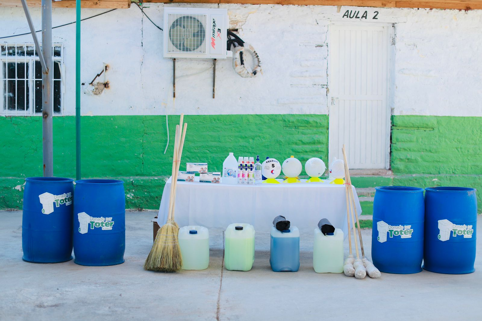 Como tradicionalmente ha sucedido en el área urbana, hoy, por primera ocasión, se desarrolló la brigada en una comunidad rural y se dotó al plantel de material deportivo y material sanitizante, artículos de limpieza y escobas, así como de tambos para el depósito de basura.