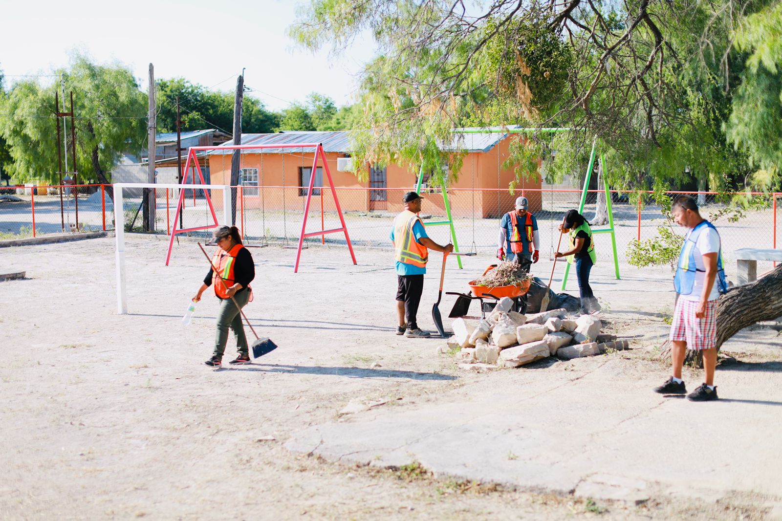 En el exterior e interior de la escuela cuadrillas de trabajadores llevaron a cabo labores de desyerbe, poda de árboles y barrido manual, rehabilitación del alumbrado público; plática en materia de salud y corte de cabello.