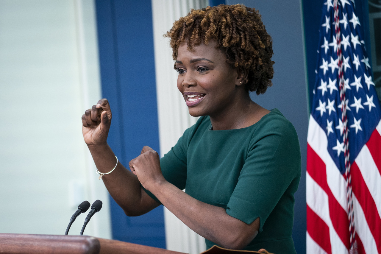 «Son fotos de familia como las que yo tengo en mi escritorio», señaló Jean-Pierre, primera portavoz de la Casa Blanca abiertamente homosexual de la historia.