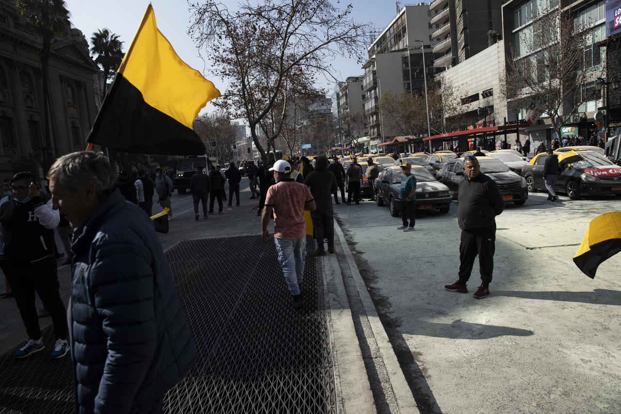 Entre cánticos, bocinazos y banderas con los colores típicos del taxi (amarillo y negro), los manifestantes avanzaron por la Alameda y llegaron al palacio presidencial La Moneda con la intención de entregarle una carta con reivindicaciones al presidente chileno, Gabriel Boric.