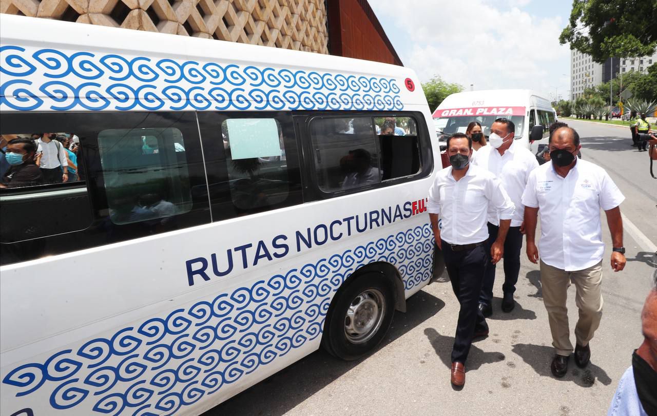 Durante su presentación, Vila Dosal señaló que la movilidad en Yucatán se está transformando con este paso, pues la población contará con un servicio de transporte público a través de 13 rutas nocturnas, de miércoles a sábado, de 11:00 de la noche a 5:00 de la mañana. Inicia operaciones el 31 de agosto y, en apoyo a la economía familiar, será gratuito en su primer mes, a excepción de la Ruta Periférico; posteriormente, el pago será con la tarjeta inteligente “Va y ven” y la tarifa, de 15 pesos.
