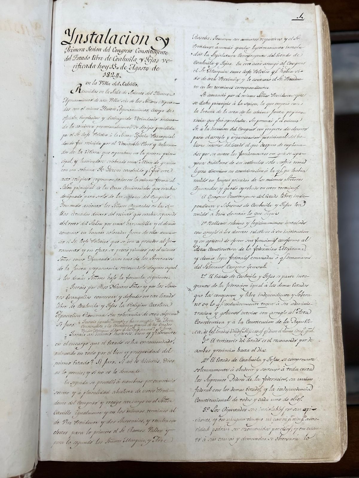 Saltillo, Coahuila 15 de agosto 2022.- El director de documentación e información legislativa del Congreso local, Javier René Castrejón Montoya, dio a conocer que un 15 de agosto de 1824 se reunieron en las Casas Consistoriales de Saltillo las seis personas integrantes del Congreso Constituyente del Estado de Coahuila y Texas, quedando así instalado el Primer Congreso Constituyente del Estado Libre y Soberano de Coahuila y Texas, clausurando sus sesiones el 24 de junio de 1827.