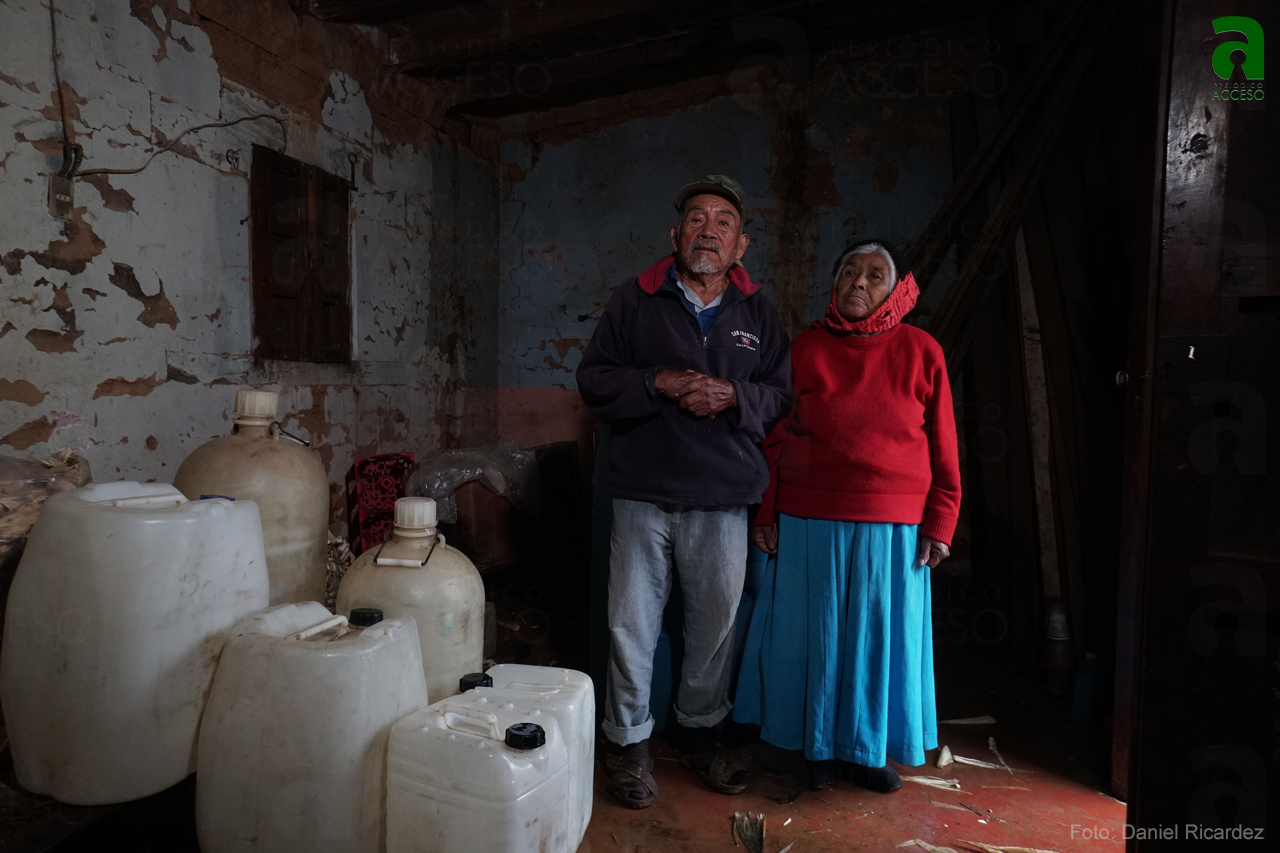 «Decían que sí lo van a arreglar, decían que por ahí venían a componer, pero hasta ahora nada”, cuenta el campesino mientras sostiene un vaso de plástico que se llena con una de las goteras del techo que debilitó el temblor.