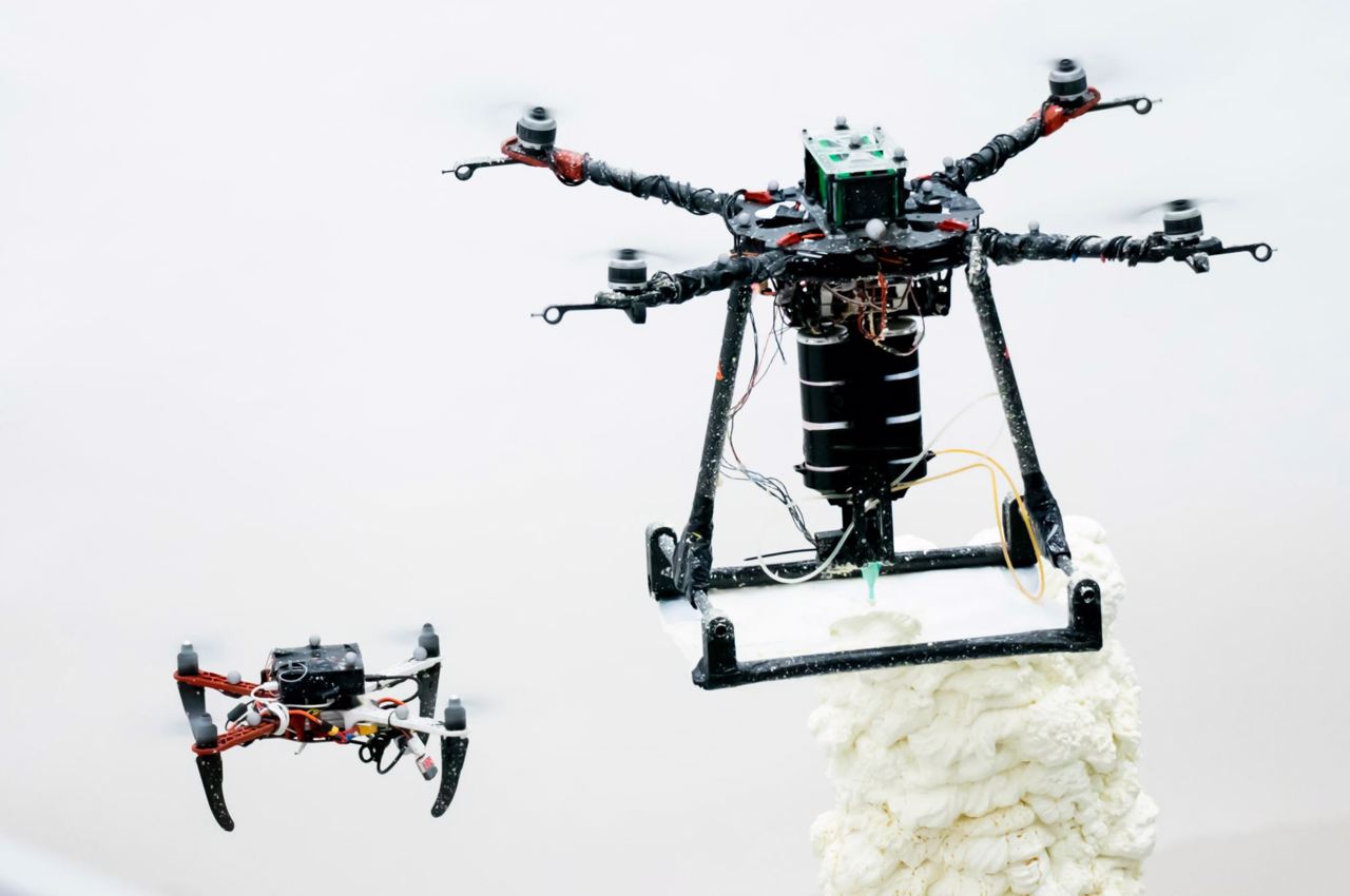 Aunque el sector de la construcción ya emplea robots terrestres para la construcción «in situ», suelen estár limitados por la altura máxima a la que pueden operar y, en el caso de los sistemas a gran escala, deben estar conectados a una fuente de alimentación, circunstancias que reducen su maniobrabilidad.