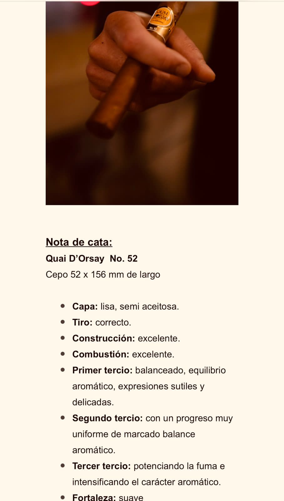 Habanos, S.A., junto a su distribuidor exclusivo en Francia, Coprova, S.A.S., presentó el pasado jueves la nueva vitola Quai D’Orsay No. 52 (Cepo 52 x 156 mm de largo) en una noche mágica celebrada en uno de los lugares más emblemáticos de París, el Hôtel de La Marine, situado en la céntrica plaza de la Concorde.