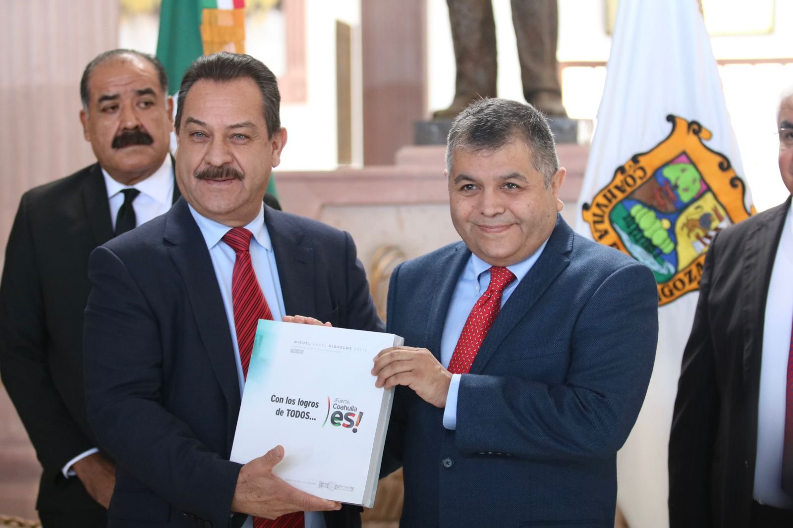 Por su parte, el diputado Eduardo Olmos Castro expresó: “Estimado Secretario, agradezco sea el conducto para hacer llegar al Ing. Miguel Riquelme, un saludo de felicitación y reconocimiento por los logros obtenidos durante este quinto año de gestión gubernamental, al tiempo que refrendamos la comunicación y coordinación existente entre los poderes ejecutivo y legislativo siempre en beneficio de los coahuilenses. Tenga la certeza que desde la representatividad plural de este Congreso, continuaremos ponderando la suma de esfuerzos y la disposición permanente a un diálogo abierto, serio y reflexivo con el ejecutivo, que reconozca fortalezas y al mismo tiempo, proponga oportunidades de mejora”