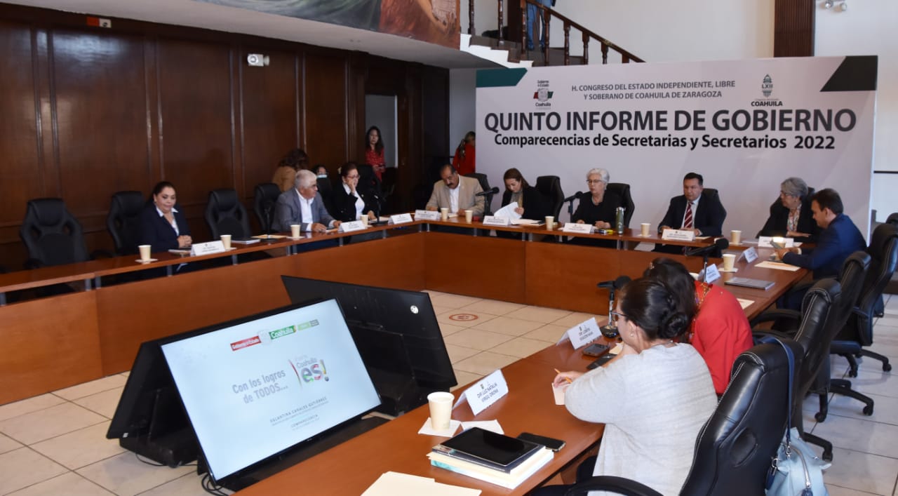 Coahuila de Zaragoza, 05 de diciembre de 2022.- Las Comisiones Dictaminadoras Permanentes del Congreso, prosiguieron hoy, durante el tercer día, con las comparecencias del Secretario de Vivienda y Ordenamiento Territorial, y de las Secretarias del Trabajo, de Medio Ambiente y de Cultura, con objeto de continuar con el análisis del 5º Informe del Gobernador Miguel Ángel Riquelme Solís.
