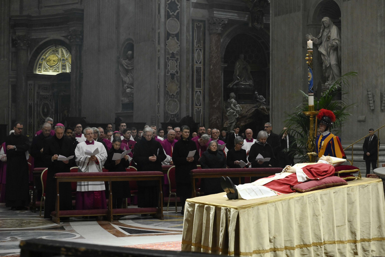 Antes de que la capilla ardiente diera inicio, se celebró una liturgia discreta con la presencia del jefe del Estado italiano, Sergio Mattarella, y la primera ministra, Giorgia Meloni.