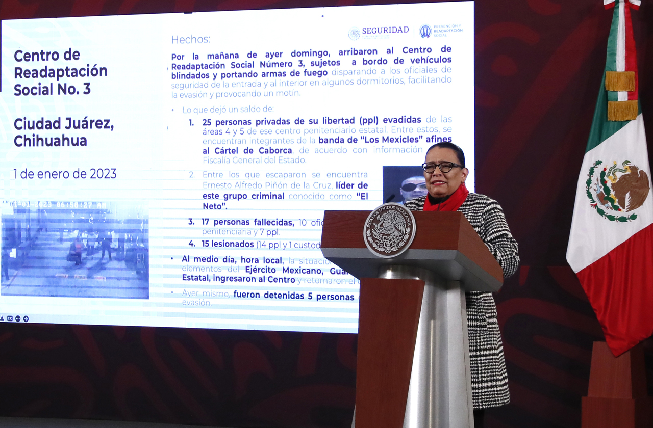 La titular de la Secretaría de Seguridad y Protección Ciudadana (SSPC), Rosa Icela Rodríguez, detalló en una conferencia de prensa que la agresión comenzó en la entrada del penal, donde hombres armados en una camioneta Hummer, modelo H2 y blindada, dispararon contra guardias de la cárcel.