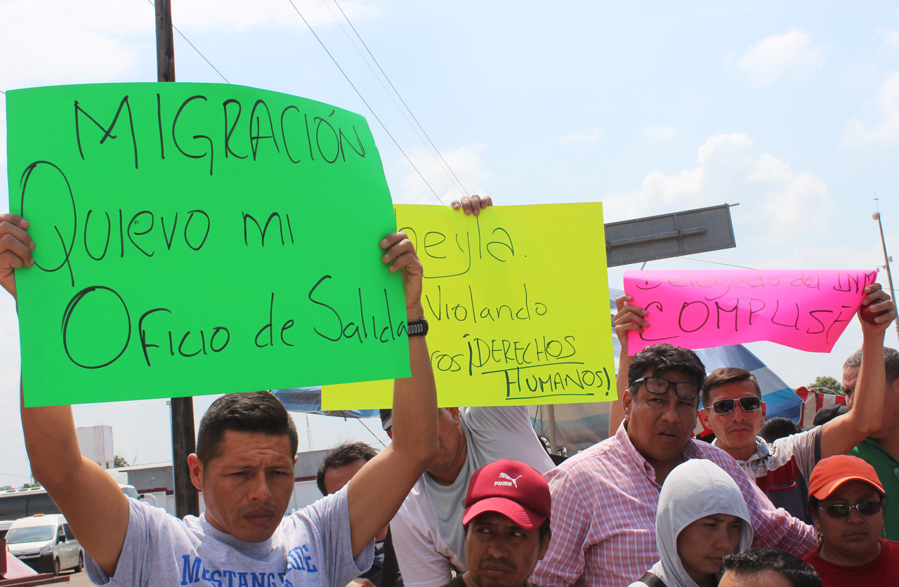 Este grupo de personas, con los representantes jurídicos, pegaron las cartulinas sobre las vallas metálicas que sirven de protección de la estación migratoria, en las que demandaron al Gobierno mexicano les entrega los oficios de salida Al grito de “Queremos oficios de salida, queremos oficios de salida”, los migrantes advirtieron que seguirán pidiendo sus papeles para salir de esta ciudad fronteriza con Guatemala y en la que han pasado meses varados.