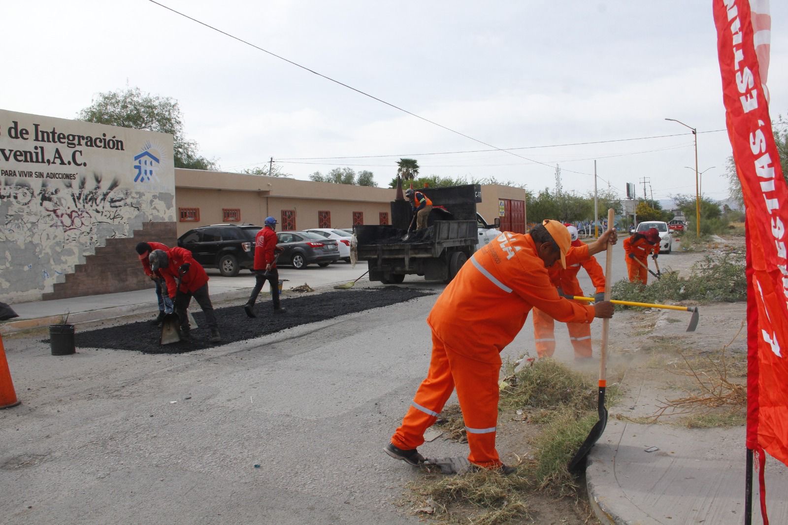 Personal de la Dirección General de Servicios Públicos, en conjunto con el Sistema Integral de Mantenimiento Vial llevó a cabo acciones intensivas de limpieza y bacheo en la colonia Arboledas y Valle del Nazas.