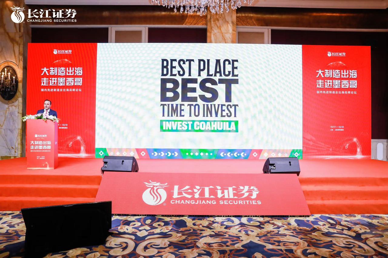 Shanghái, China; 25 de octubre de 2023.- El Gobernador Electo de Coahuila, Manolo Jiménez Salinas, participó como ponente en el foro “Invest in Mexico, Invest in Coahuila” organizado por la Embajada de México en China, en donde habló ante decenas de inversionistas asiáticos sobre las bondades de invertir en Coahuila, señalando como principales atractivos la seguridad, el estado de derecho, la paz laboral, la mano de obra mejor calificada y la calidad de vida en la entidad.