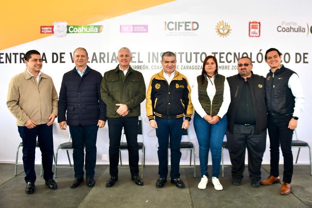 El alcalde Román Alberto Cepeda González acompañó al gobernador de Coahuila, Miguel Ángel Riquelme Solís, a la entrega de la velaria del Instituto Tecnológico de La Laguna, con una inversión de 10 millones de pesos.