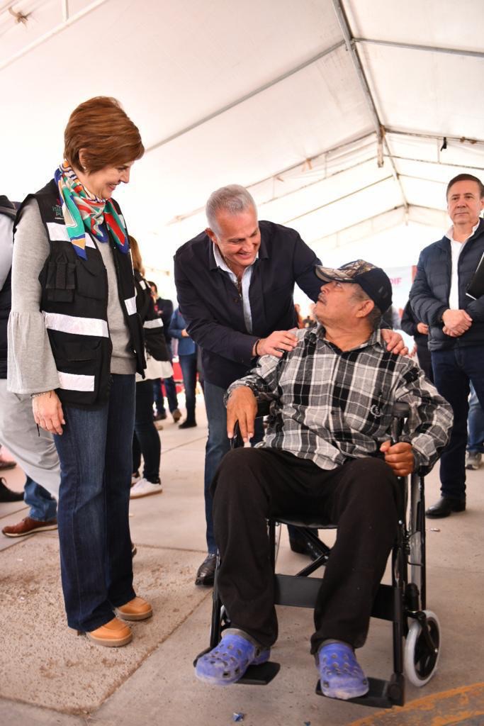 Durante la brigada se hizo entrega de aparatos para la movilidad como sillas de ruedas, andadores con asiento y bastones, así como apoyos alimentarios.