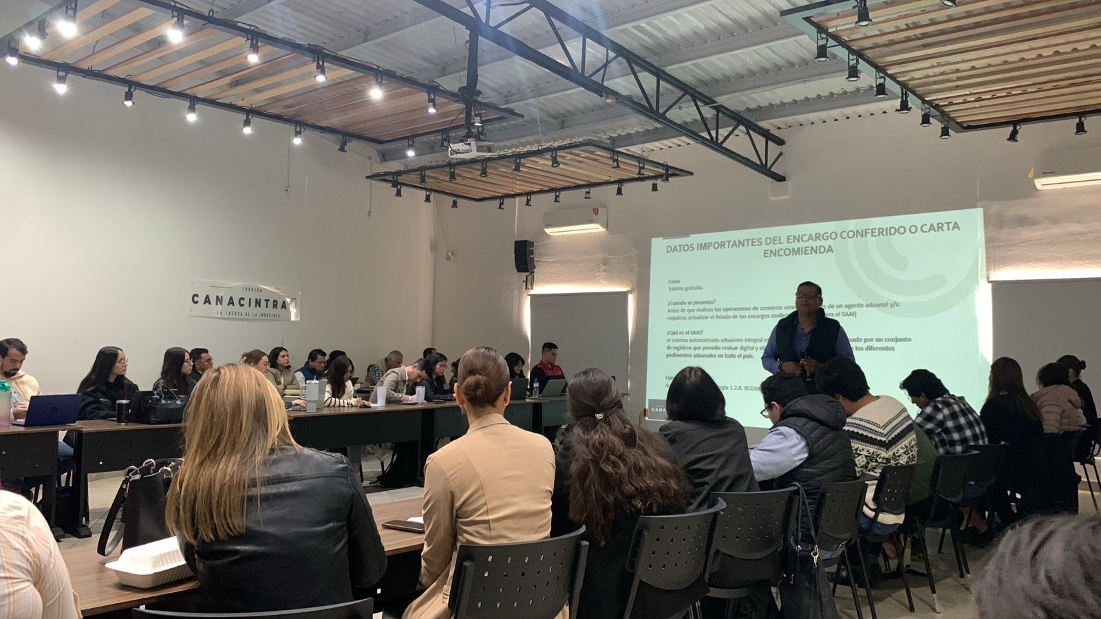 Por ese motivo, en colaboración con CANACINTRA, se definió la impartición de un taller que permitiera profundizar en temas como “Tratados de libre comercio y certificados de origen”, “Contratos, seguros y medios de pago”, “Transporte y logística de exportación”, entre otros.