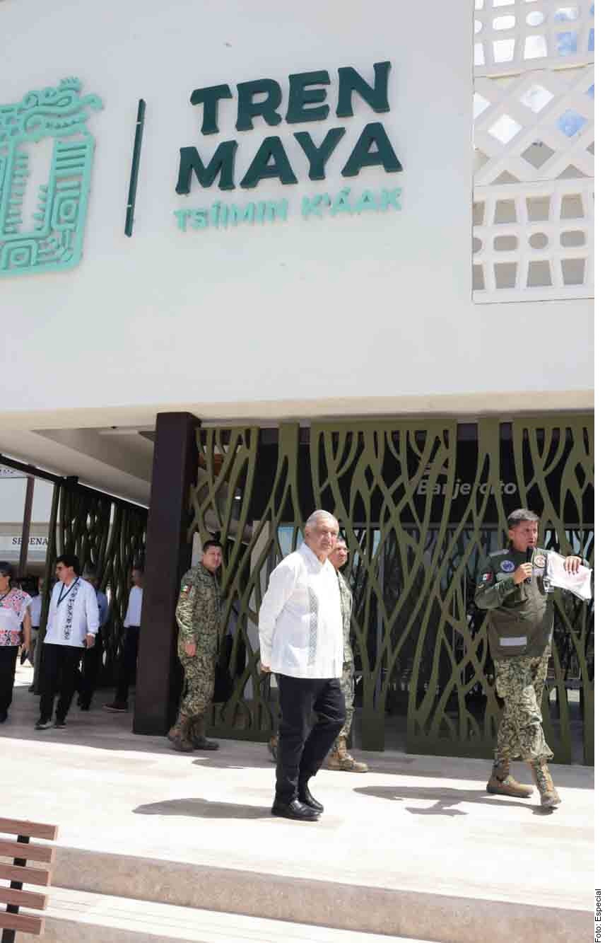 A las 11:50 horas, López Obrador aborda el Tren Maya. Se dispone a inaugurar el tramo Cancún-Playa del Carmen.