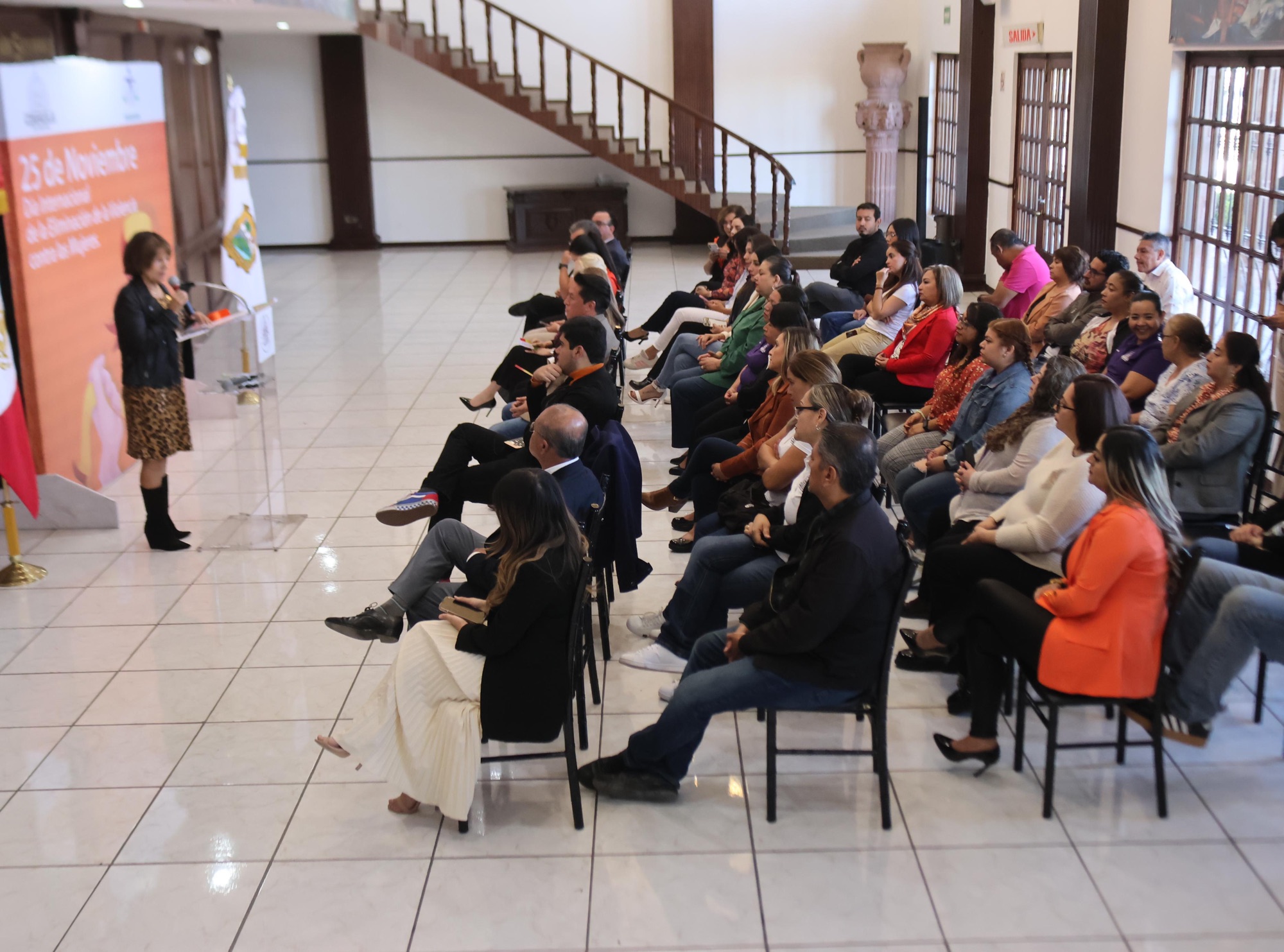 La mañana de este lunes, se llevó a cabo esta ceremonia encabezada por la maestra Laura Martínez Rivera titular de la Unidad de Género del Congreso del Estado, y con la participación de la Oficial Mayor, Mariana Sánchez, directivos, así como el personal de las distintas áreas.