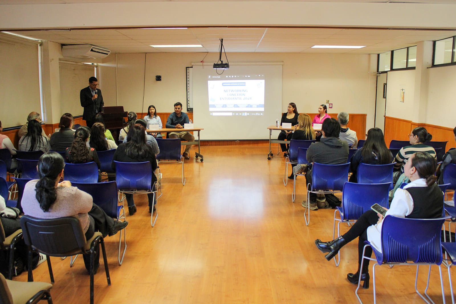 En el Networking “Conexión estudiantil 2024”, se contó con la participación de los ponentes: Arely Margarita González Muñoz, quien actualmente se desempeña como Analista de Desarrollo Organizacional en Grupo Gallegos; Cristian Jesús Dueñez Pedrueza, reclutador en Pollo Feliz; Miriam Vélez Rangel, auxiliar de Desarrollo Organizacional en el Hotel Misión Torreón.