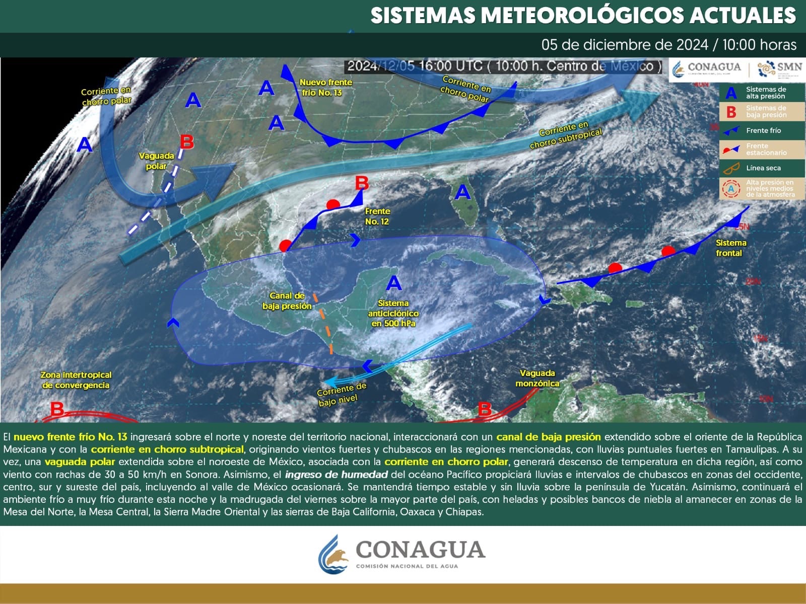 La Subsecretaría de Protección Civil del Estado informa que el Frente Frío número 13 ingresará sobre el norte y noreste del territorio nacional. Este fenómeno interactuará con un canal de baja presión, generando vientos fuertes y chubascos en diversas regiones de Coahuila durante la noche.