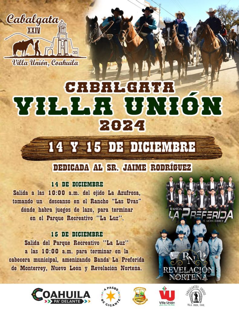 El domingo 15 de diciembre, los jinetes se trasladaran a la cabecera municipal, a las 10:00 de la mañana para finalizar la cabalgata y disfrutar del característico ambiente de Villa Unión, con música en vivo de la banda La Preferida de Monterrey y el grupo musical Revelación Norteña.