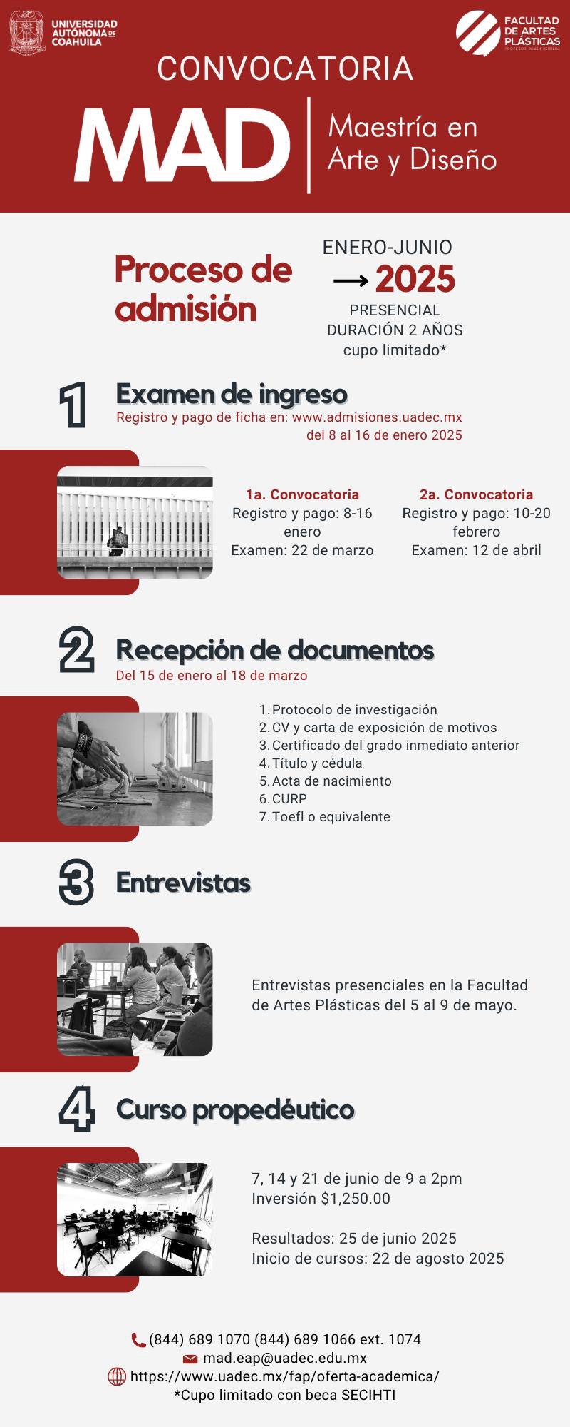 Para más información llamar a los teléfonos (844) 689 10 70 y (844) 689 1066 extensión 1074, escribir al correo mad.eap@uadec.edu.mx o visitar el sitio https://www.uadec.mx/fap/oferta-academica/.