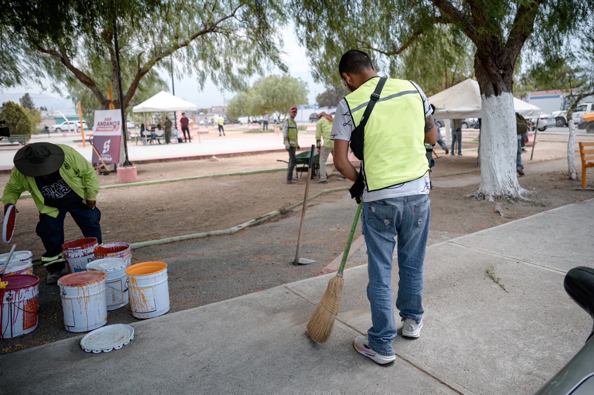 Gilberto y Carlos accedieron al modelo de justicia cívica y conmutaron su multa o arresto por faltas administrativas con la presentación de servicios de limpieza y embellecimiento en una plaza pública del barrio del Ojo de Agua.